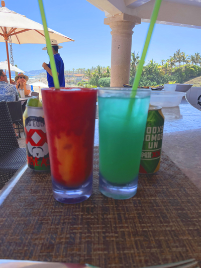 –The restaurants that we really enjoyed were Los Riscos (grill), Barolo (Italian), and La Trajinera (Mexican). There is also a fun taco place for dinner that doesn’t need a reservation. You can also eat at Mestizo, although last time we were there you had to be on the premium plan to do so. Downtown, there are also some dinner restaurants attached to Marina Fiesta ( included in your all-inclusive plan) and are overlooking the Marina and sometimes have live music – such as Jack’s and the Baja Lobster Co.